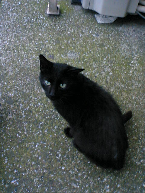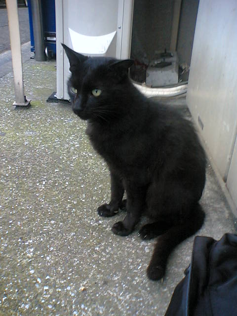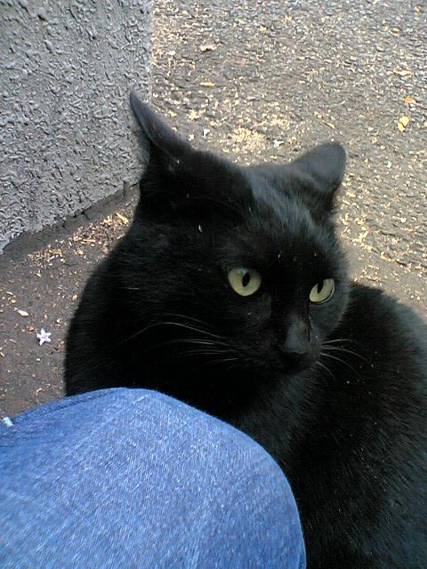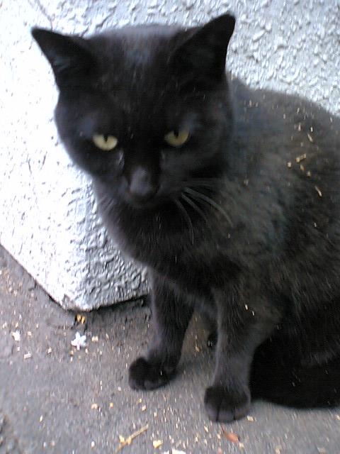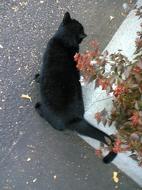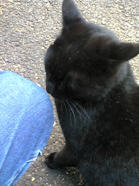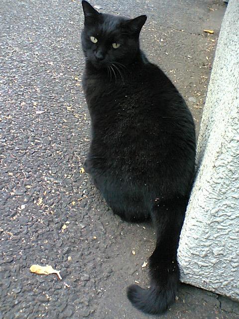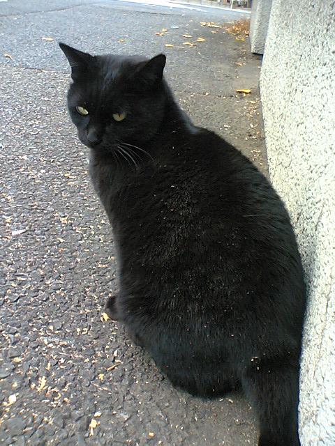 どっかの車道沿いの道で会った黒猫。