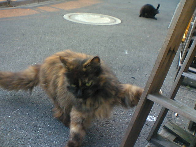 シャッタースピードを上回る速度で接近してくる、人懐こい猫。
