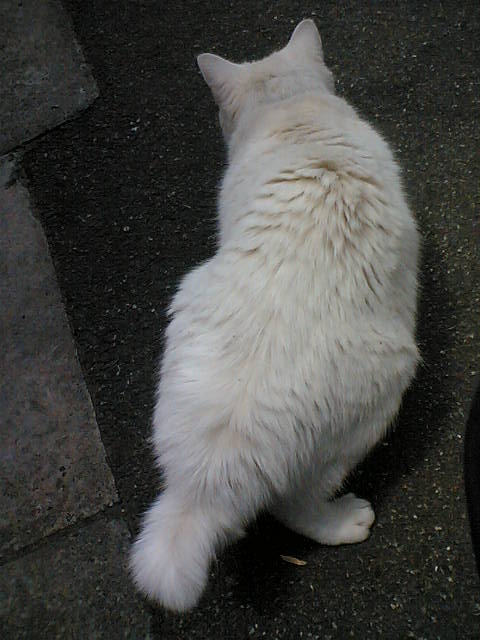 今までに野良猫を何十匹も見てきたが、真っ白い野良猫というのはほとんど見たことがない。