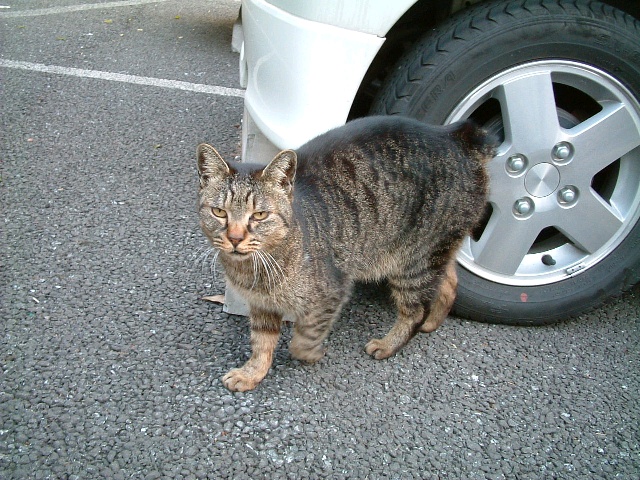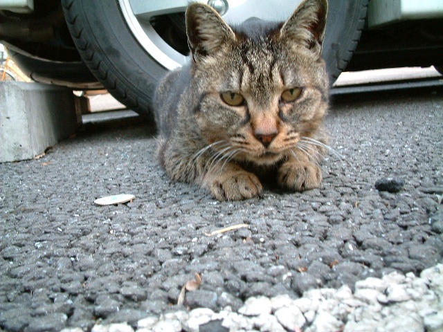 歩いて5分の駐車場をテリトリーとする猫たちの一匹。